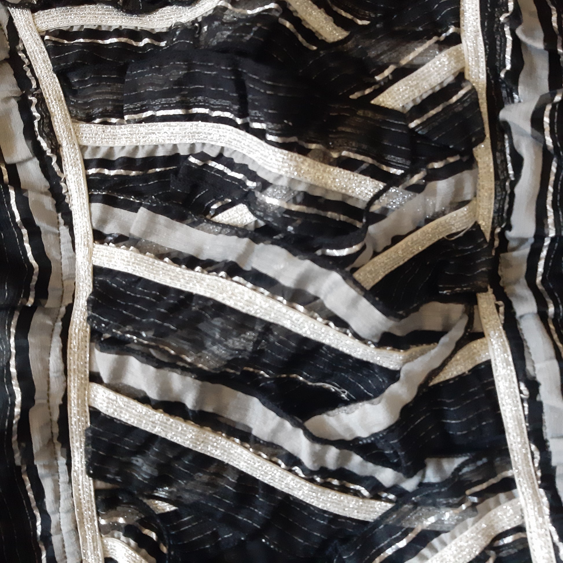 ~ this top is a blast from the past! Black and metallic striped corset with silver glitter straps ~