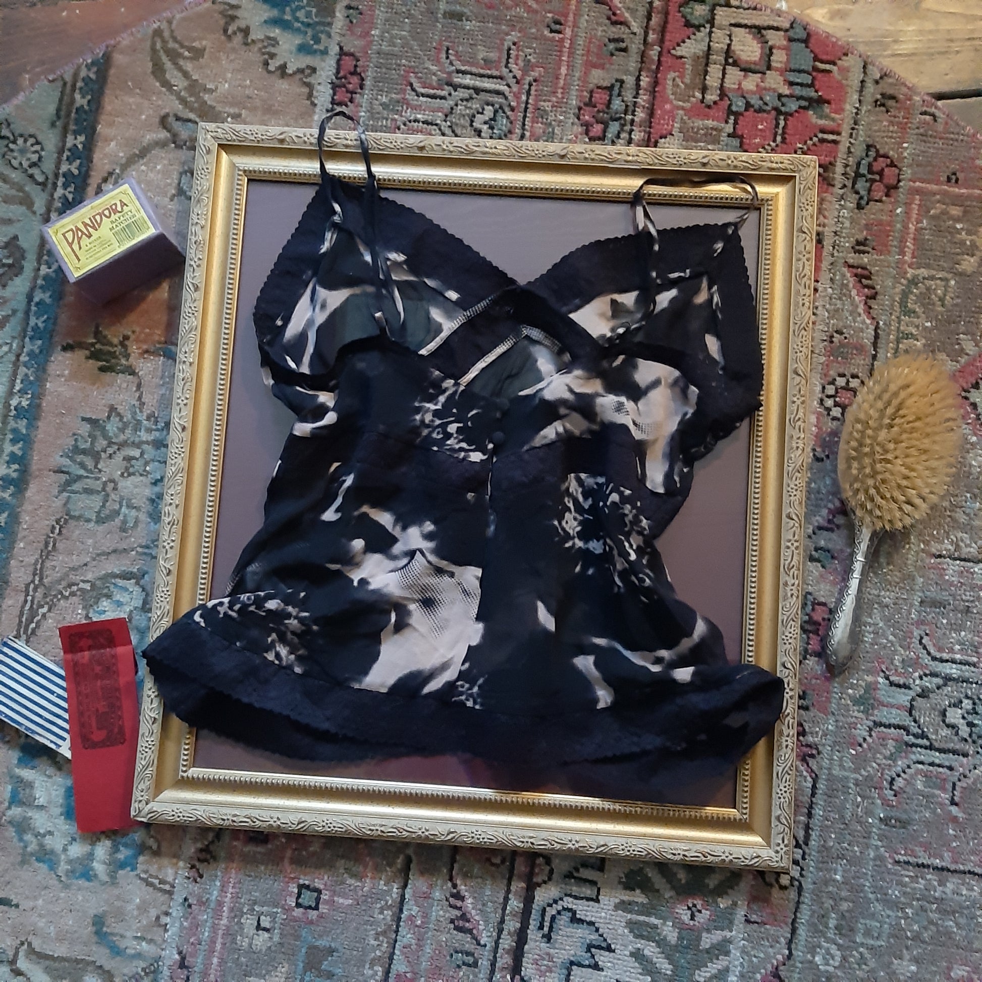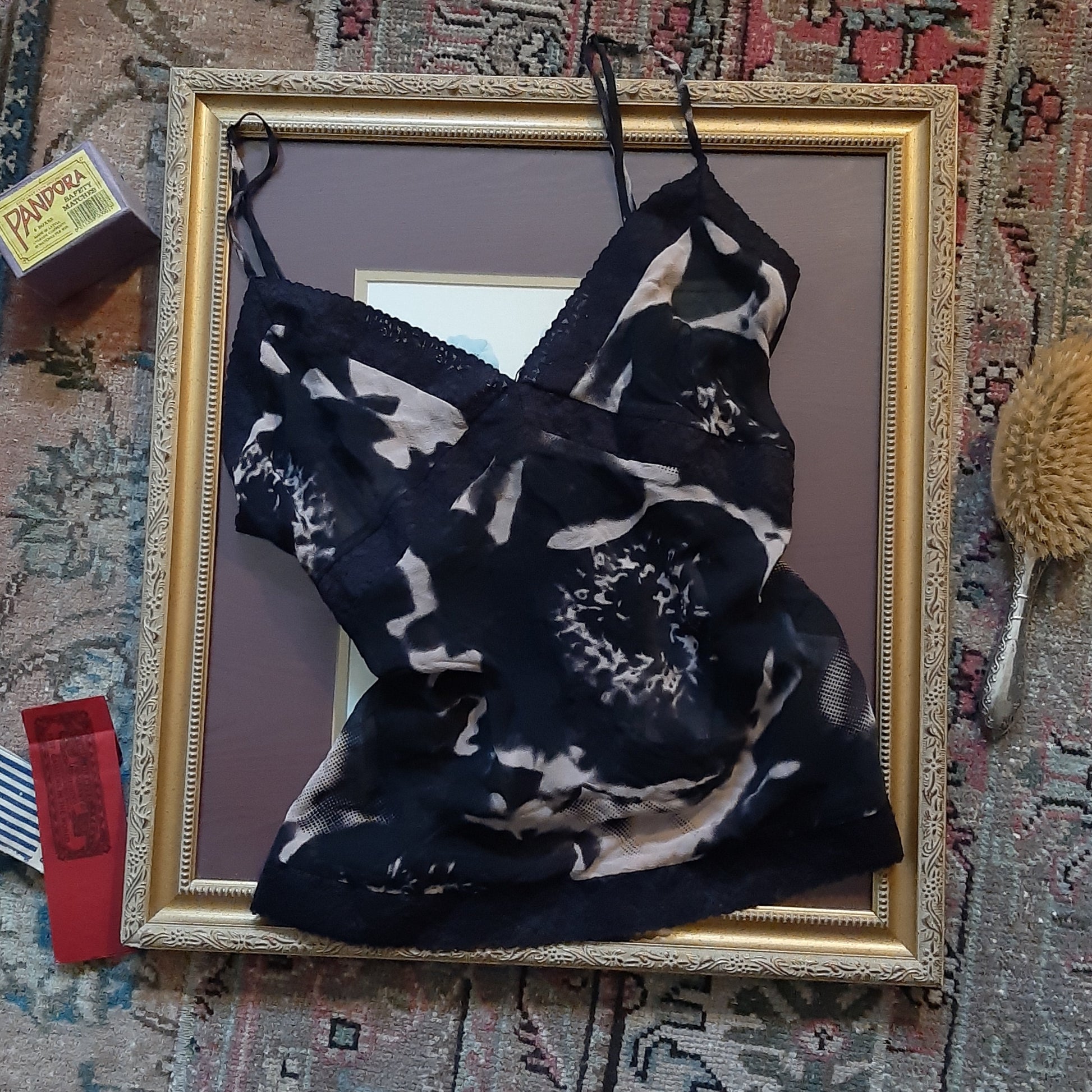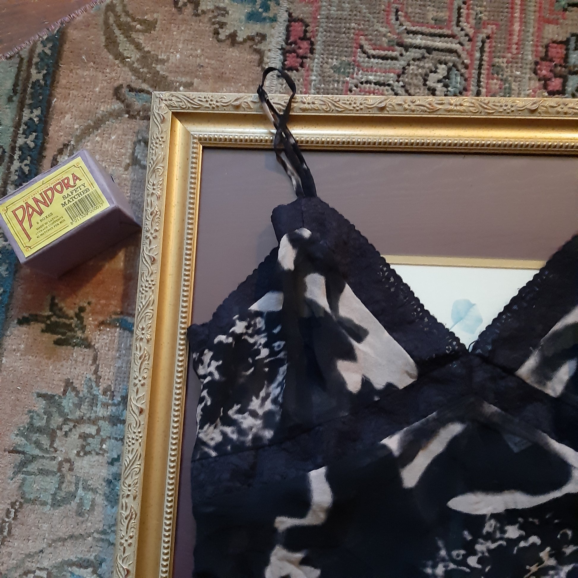 ~ Black and pink diesel pattern camisole with lace and buttoned back ~