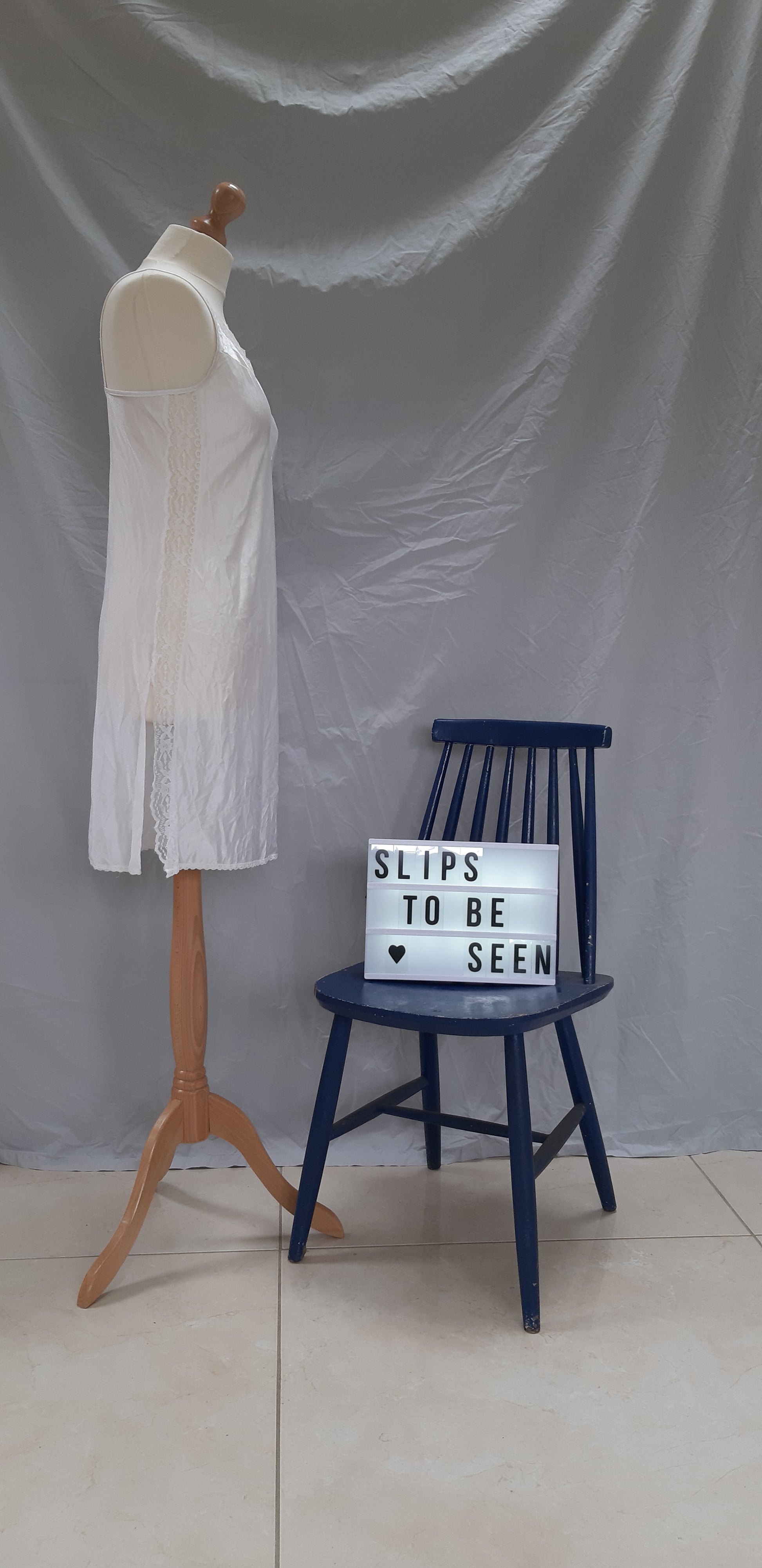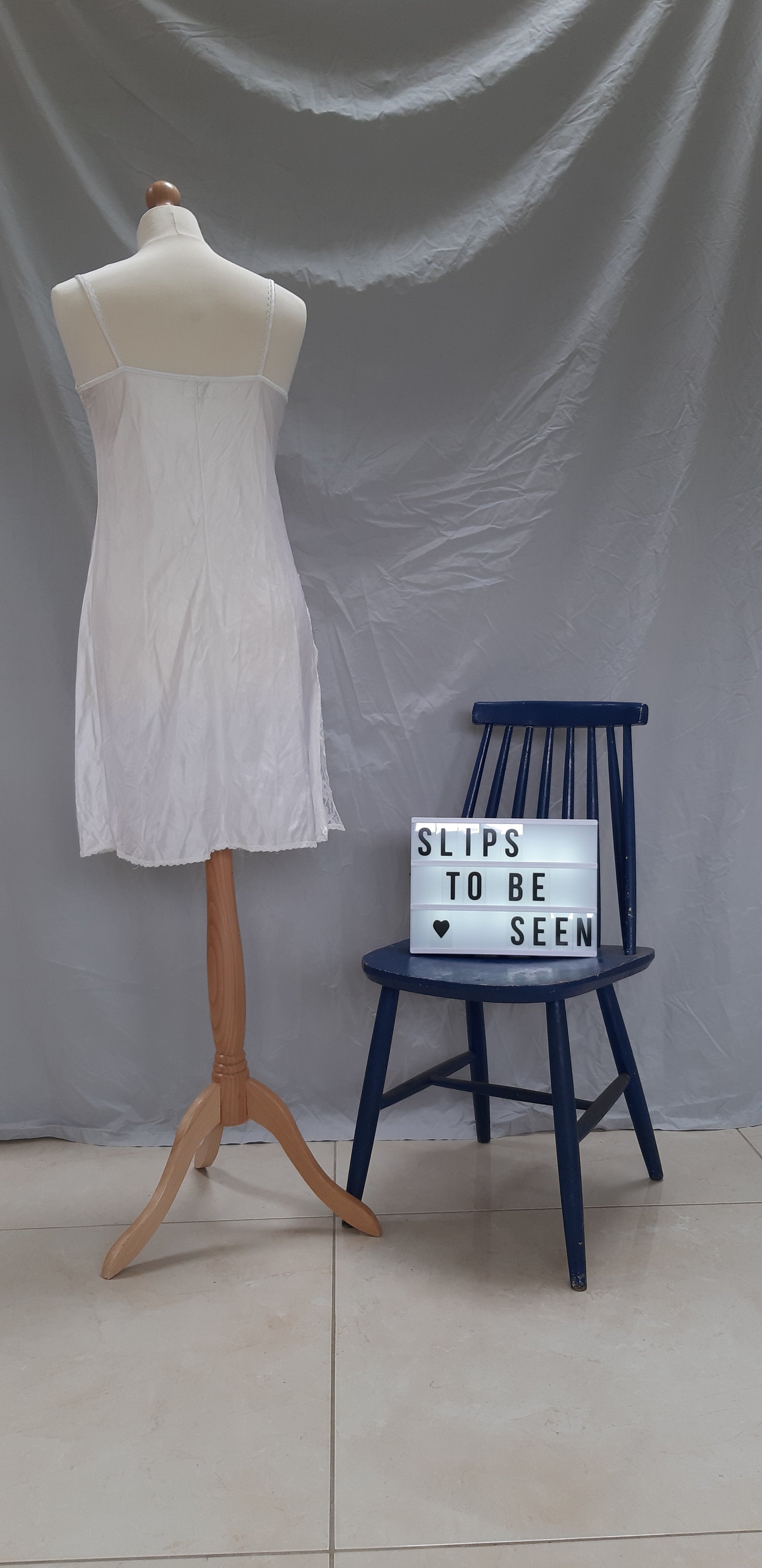 ~ Spaggeti strap slip with lace vee front and side split with lace detail~